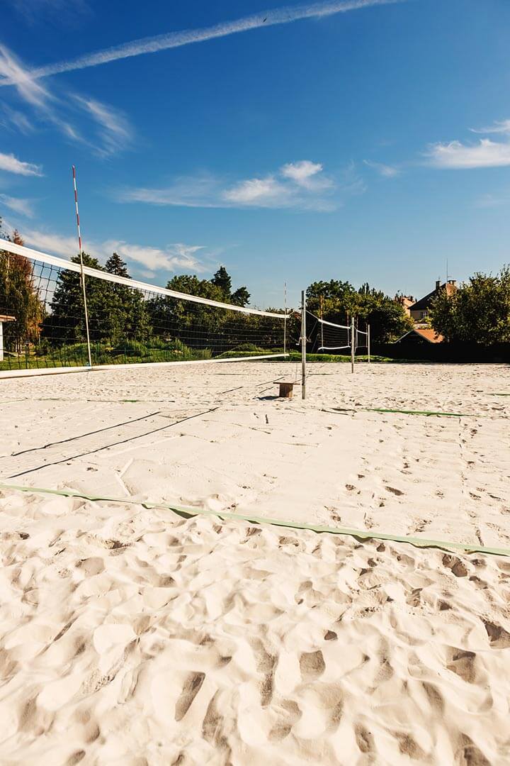 K pronájmu jsou připravené tři kurty na beach volejbal, které je navíc možné propojit tak, že si s přáteli můžete zahrát i plážový fotbal nebo házenou. Pravidelně se tu pořádají i přátelské turnaje amatérských hráčů. V areálu můžete zcela zdarma využít také tři hřiště s umělou trávou. Po sportovním výkonu si pod pergolou vychutnáte drobné občerstvení z místního baru.
